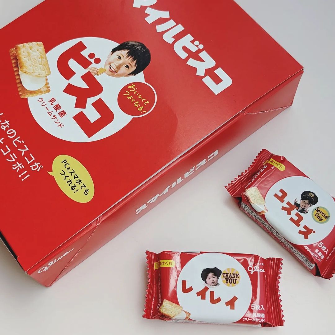 🍪 とってもおすすめ🥹✨ オリジナルビスコ!! ビスコのパッケージをオリジナルで作ることができるよ🤍 中身はみんな大好きな赤いビスコ🫶 作るのもスマホで簡単なの🥨 好きな写真を選んで文字を入れてスタンプ(顔横の丸部分)選ぶだけ👍👍 作るの2回目なんだけど 何回作っても楽しいしみんな喜ぶ☺️🤍 子どもの写真でももちろんペットや推しでもいいよね❤️🔥 ぜひチェックしてみてね😉 #江崎グリコ #グリコダイレクトショップ #ビスコ #スマイルビスコ #おいしくてつよくなる #Glico_PR #こどもの日 #monipla #glico_fan