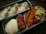 9月25日の子供たちのお弁当です[ぴかぴか(新しい)] 海老フライ キャベツのカレー風味炒め かぼちゃのレーズンマッシュ プチトマト 梨 長男も長女も海老フライは大好き[黒ハート] 大喜びしてました[ぴかぴか(新しい)] 娘はピースサインのデコ弁当[うれしい顔] 運動会… 2014/09/26