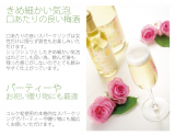 和歌山南紀白浜の地で育ったブルガリアローズ「ロサ・ダマッセナ」は気品溢れる香りが特徴的です。紀州南高梅の梅酒と白ワイン、それに朝摘みした生花の香りを封じ込めた新感覚のスパークリングをお楽しみ下さい。