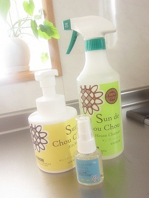業務用エコ洗剤を家庭用に商品化した「サン・デ・シュシュ」、キッチン用&ハウスケア用のお試しセットです。