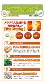 こんばんわ! 久々の更新で、 久々の当選商品のモニター! 当選したのは、 1DAYミラクルダイエットサプリ! 朝専用粒と夜専用カプセルに わかれてるよ! 1ヶ月分で各180粒ずつ入ってて、 おすすめな飲み方は 朝専用粒は朝食後に6粒、 夜専用カプセルは夕方以降の食事前に6粒、 合計12粒… 2014/10/19