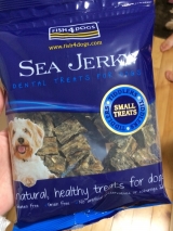 シージャーキーティドラーはタラの皮を乾燥させた四角いトリーツです。
