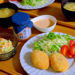 2021/10/21 この日の#晩ごはん は、鮭フレーク を使って、お手軽な揚げ物を♪♪ #鮭と明太のチーズ入りコロッケ #鶏とはんぺんのすまし鍋 #焼き茄子 🍆 函館あさひ さんからモニターで頂いた#荒ほぐし鮭明太風味 を使って作ったコロッケ 作り方はとっても簡単💨 ↓ ・蒸すかレンチンしたじゃがいも🥔(大2個) ・レンチンしたみじん切りの玉ねぎ🧅(1/2個) ・鮭フレーク🐟(大さじ5くらい) これらを混ぜて、お好みのチーズを入れて丸め、衣を付けて揚げるだけ♪♪ 手軽に作れて、この組み合わせは間違いない美味しさ♡ そのままは勿論、ソースをかけたり、上から更に荒ほぐし鮭明太をかけても、明太のピリッとした風味が際立ち、美味しかったですょ🥰 すまし鍋は、もう何度もリピしているお気に入りのレシピ✨ こちらも手軽に作れて、体にも優しくて美味♡ #鮭フレーク #ほぐし鮭 #ご飯が進む #アレンジレシピ #簡単レシピ #ご飯のお供 #おつまみ #Goshoku #合食 #monipla #goshoku_fan #夕食#晩御飯#ディナー#dinner#無限小鍋#おうちごはん#お家ごはん#おうちご飯#日々のごはん#旬の食材#shiorikaregohan #cookingram#delistagram#普子食堂 2021/10/26