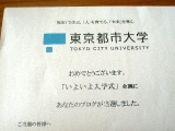 モニタープラザ内東京都市大学グループさんのプロジェクト東京都市大学が初めての入学式を迎えるにあたってお祝いメッセージを送ろう! に参加して当選し東京都市大学オリジナルノートとクオカード1,000円をいただきましたこちらが当選通知です!小さめサイズのとっても使いやすそうなノートです!大学生気分で使わ… 2009/04/14