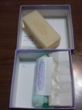 無添加にこだわったお店グラースグラースさんの まるで美容液のような生洗顔石鹸『大阪セシボン』モニター募集で、 『大阪セシボン』45g×2個入りを頂きましたぁ〜 入れ物からして、とってもステキです 宝石箱みたい 箱を開けると↓ 石鹸2つと洗顔ネットが入ってます!! ★大阪セシボンとは… 2009/12/20