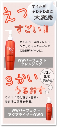 WWラインの2アイテムは、クレンジングと美容液の2ステップと言う、シンプルケア。