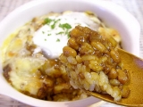 さて、いただいた納豆を使って今回も一品考えてみましたあまりにおいしい納豆なので、ご飯にかけて食べるのがベストだと思ったのですが、せっかくお手紙で期待を寄せてくださっているのですから、美味しい納豆のお礼として応えなければっ今回作ったのはコチラ焼き納豆カレーです!今話題の“焼きカレー”を納豆入りで作っ… 2009/08/05
