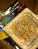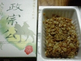 前回に引き続き今度はエコ正宗を頂きました♪黒のシックなデザインがかっこいいです『伊達藩古式納豆 政宗公』もなんですがどちらもデザインが素敵で食べる前からちょっと嬉しくなっちゃうんですよね♪個人的にはとってもポイント高いですさてさて、開けてみるとシンプルなデザイン納豆の上にビニールシートが被せて… 2009/10/04