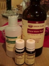 さてお勉強の時間です 自由が丘なんて、お洒落な街にある グリーンフラスコ さんで、手作り化粧水のセミナーを受けてきました 講習会のあったテーブルステキ では、早速材料のご紹介を ローズウォーター 55ml 植物性グリセリン 5ml 精… 2010/11/04