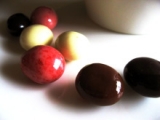 前回ミルクティーで頂いたジャーマンカモミールと SAZAコーヒー豆チョコでティータイムです SAZAコーヒーの豆チョコは、コーヒー豆にチョコがコーティングされています そのままだぁ ビター、ホワイト、赤いのは酸っぱいのでベリーかな 中のお豆がほろ苦くて、甘いチョコレートとマッチし… 2011/02/22