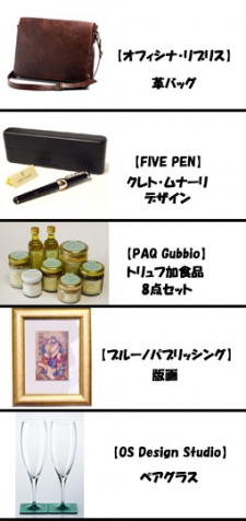 グッビオショッピングサイトではお年玉プレゼントを実施してます1月4日までにメール会員になられた方を対象に1.グッビオに残る伝統的な革工芸技術で有名なブランド【オフィシナリブリス】の革バック2.ノーベル文学賞受賞者5人のために、世界的な建築家5人がデザインした万年筆【FIVE PEN】3.世界三… 2009/01/01