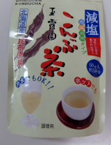 玉露園の減塩こんぶ茶をいただきました塩分を30%カットしながら、カルシウムやヨウ素等のミネラル分を豊富に含んでいる、ヘルシーなこんぶ茶50g入りのスタンドパック細かい粉末で、お料理にも使いやすいですお湯割りしてホットで飲んでみると、昆布の味わいがありながら塩分控えめで、じんわり温まりました… 2019/11/23