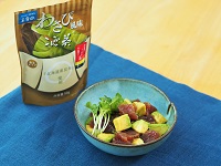 『わさび風味こんぶ茶』を使って「アボカドとまぐろのわさび昆布茶和え」です。