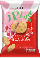最後にコラボ商品のお知らせです。金吾堂さんとのコラボ商品として「パリッと煎 さわやかな梅こんぶ茶風味」が発売されていますので、お店で見かけたらお試しくださいね!