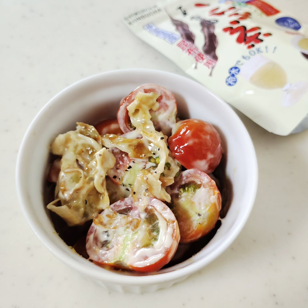 🍅🍅🍅 ミニトマトがたくさん採れました✨ そのまま食べてもおいしいのですが、そればかり続くのもなあ…と思い簡単なサラダを作ってみました🥗 ………⭐ 🗒ミニトマトのこんぶ茶マヨサラダ ・ミニトマト 10個 ・減塩こんぶ茶 小さじ1/2 ・マヨネーズ 大さじ2 ・花がつお 適量 ミニトマトを半分にカット → 減塩こんぶ茶、マヨネーズ、花がつおと和えて完成 お皿ごと冷た〜く冷やしていただくのがおすすめです💮 ………⭐ 夏は浅漬けのもと的に使うことが多いこんぶ茶ですが、マヨネーズと和えるのもよく合います!発見💡 減塩こんぶ茶のうまみと花がつおのうまみがマヨネーズでひとつにまとまり、味わい深いサラダになります💫 #PR #玉露園 #減塩こんぶ茶 #玉露園のこんぶ茶 #monipla #gyokuroen_fan