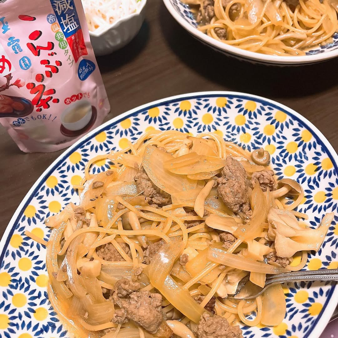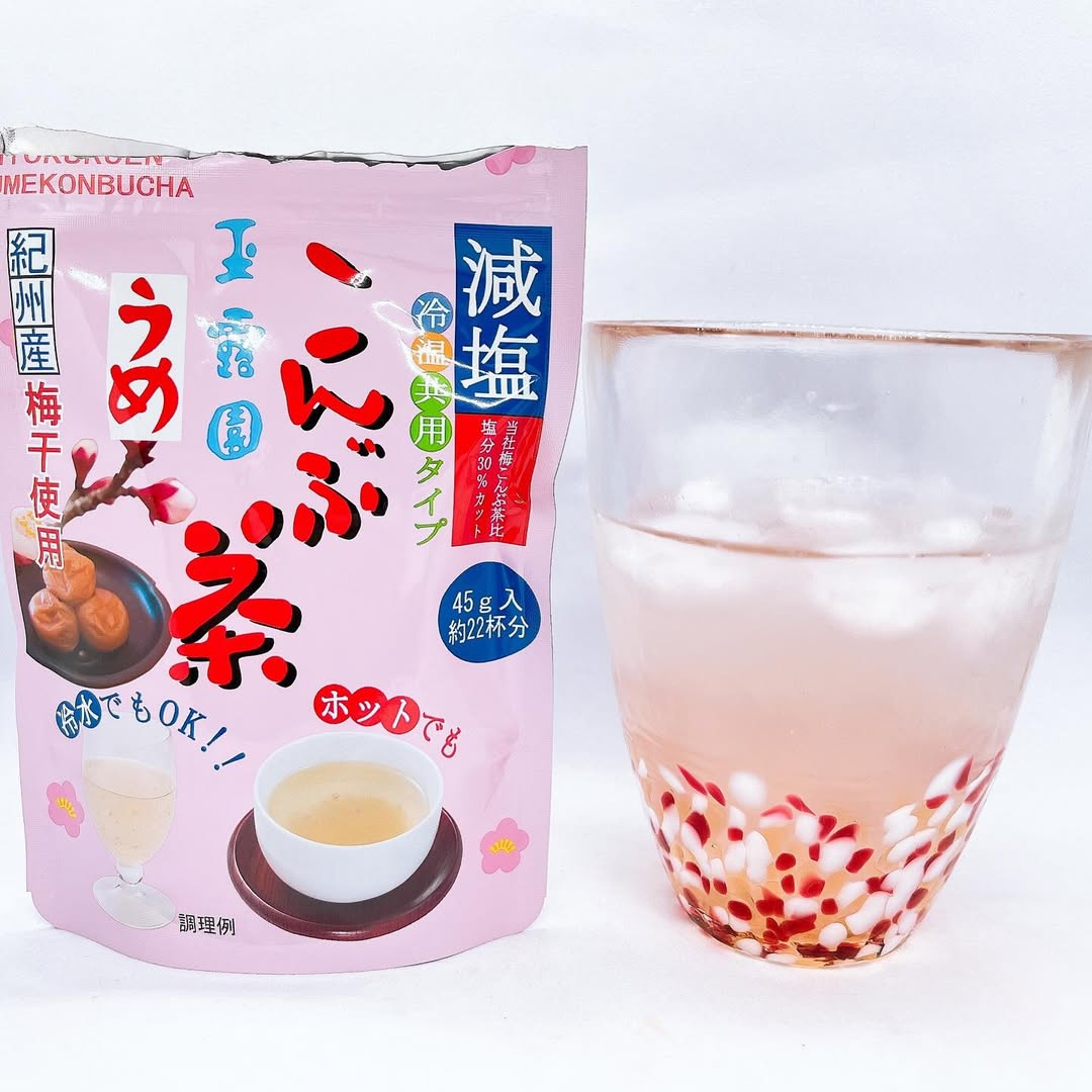 今回は減塩梅こんぶ茶を使用しました😊 減塩梅こんぶ茶は塩分を30%カット(当社梅こんぶ茶比)しながらカルシウムやヨウ素などのミネラル分を豊富に含んでいるそうです。 そして梅干しに含まれるクエン酸には体の疲労物質を取り除いたり、体脂肪を溜め込まない効果もあるそうです。 飲み方はティースプーン半分(約2g)をコップに入れて冷水または熱湯(90℃)を100cc程注いでかき混ぜます。 顆粒が水にすぐ溶けてくれます。 冷やして飲むと熱中症対策にもオススメです。 減塩なので塩分も気にして飲めるのも嬉しいです。 和風パスタに混ぜると程よい梅の味がアクセントにきいて美味しくなります。 そのまま飲んでも、料理に使用しても美味しいので気になる方は是非チェックしてみてくださいね。 #PR #玉露園 #減塩梅こんぶ茶 #玉露園の梅こんぶ茶 #monipla #gyokuroen_fan