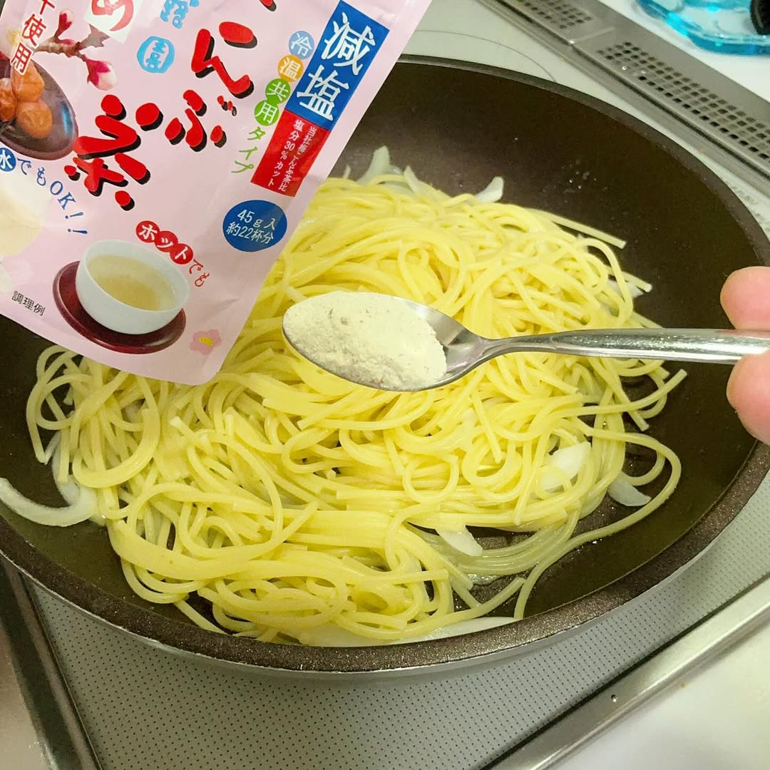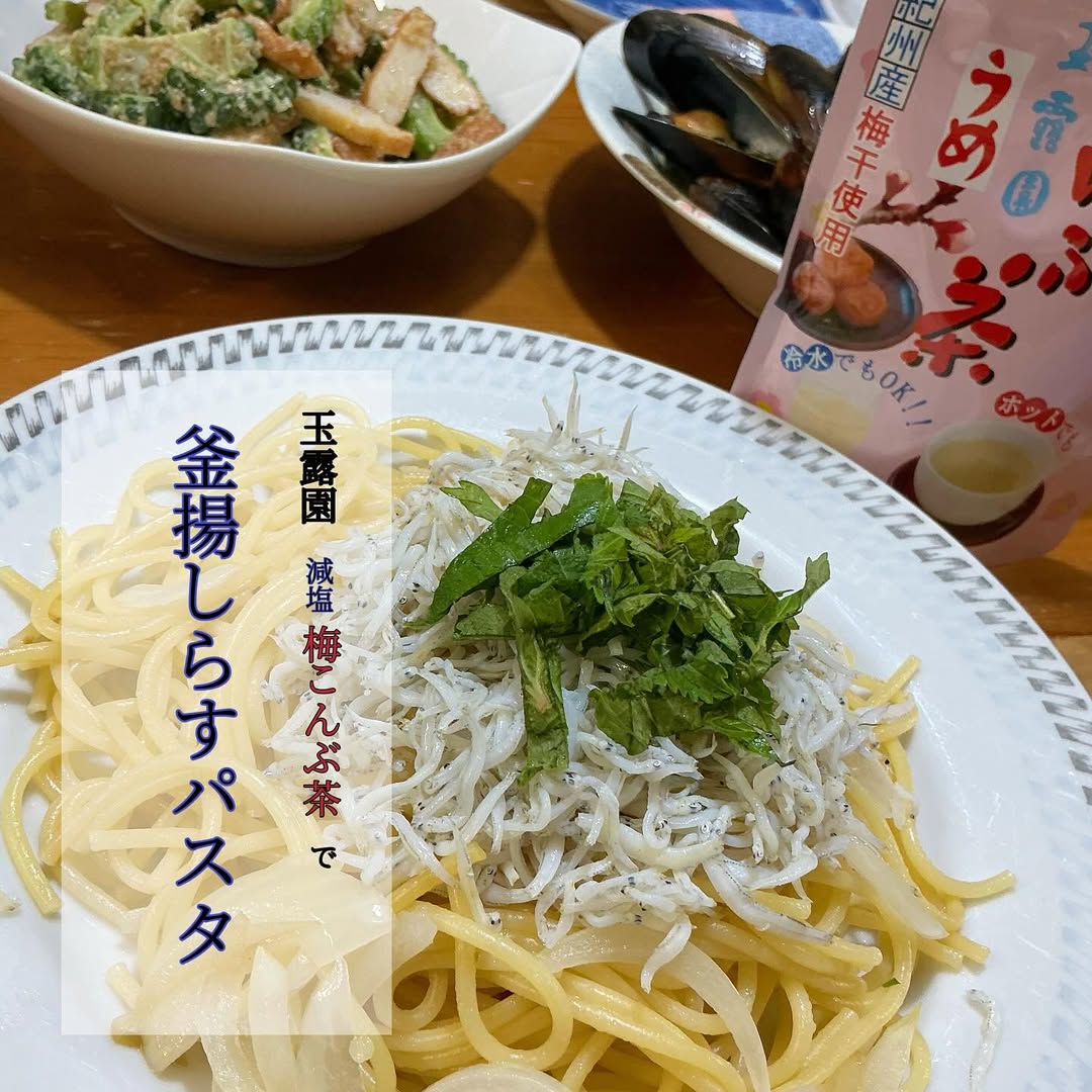 玉露園 減塩梅こんぶ茶 うま味たっぷりのこんぶ茶にフリーズドライの梅がプラスされた熱中症対策にピッタリな減塩タイプの梅こんぶ茶です。 こんぶは北海道羅臼産昆布を使用、梅は紀州産梅が使用されています。また玉露園様従来品梅こんぶ茶比で塩分が30%カットされているので、塩分が気になる方にも使いやすいところが嬉しいです。 粉末タイプでお湯にも水にも溶けやすく料理にも使いやすいので用途は色々。私は毎日の猛暑の中、キンキンに冷やした減塩梅こんぶ茶を飲むのがとても気に入っています。 今回私は「減塩梅こんぶ茶」を使って『釜揚げしらすパスタ』を作ってみました。作り方は超簡単、茹でたパスタを炒めた玉ねぎと合わせて「減塩梅こんぶ茶」と和えるだけ!しらすに塩味があるのでこんぶの旨みだけでも十分満足のいく味付けになりました。 マイボトルに入れて外出先でもゴクゴク飲むのもオススメ❗️ 気になる方は是非チェックしてみて下さいねー👋 #PR #玉露園 #減塩梅こんぶ茶 #玉露園の梅こんぶ茶 #monipla #gyokuroen_fan