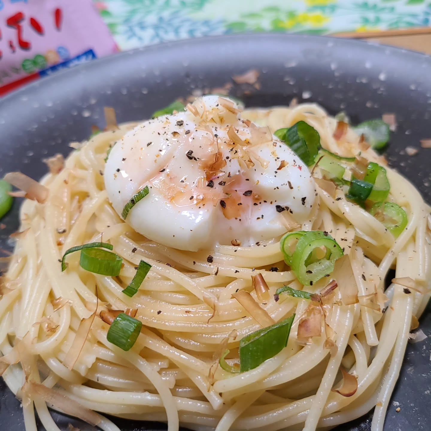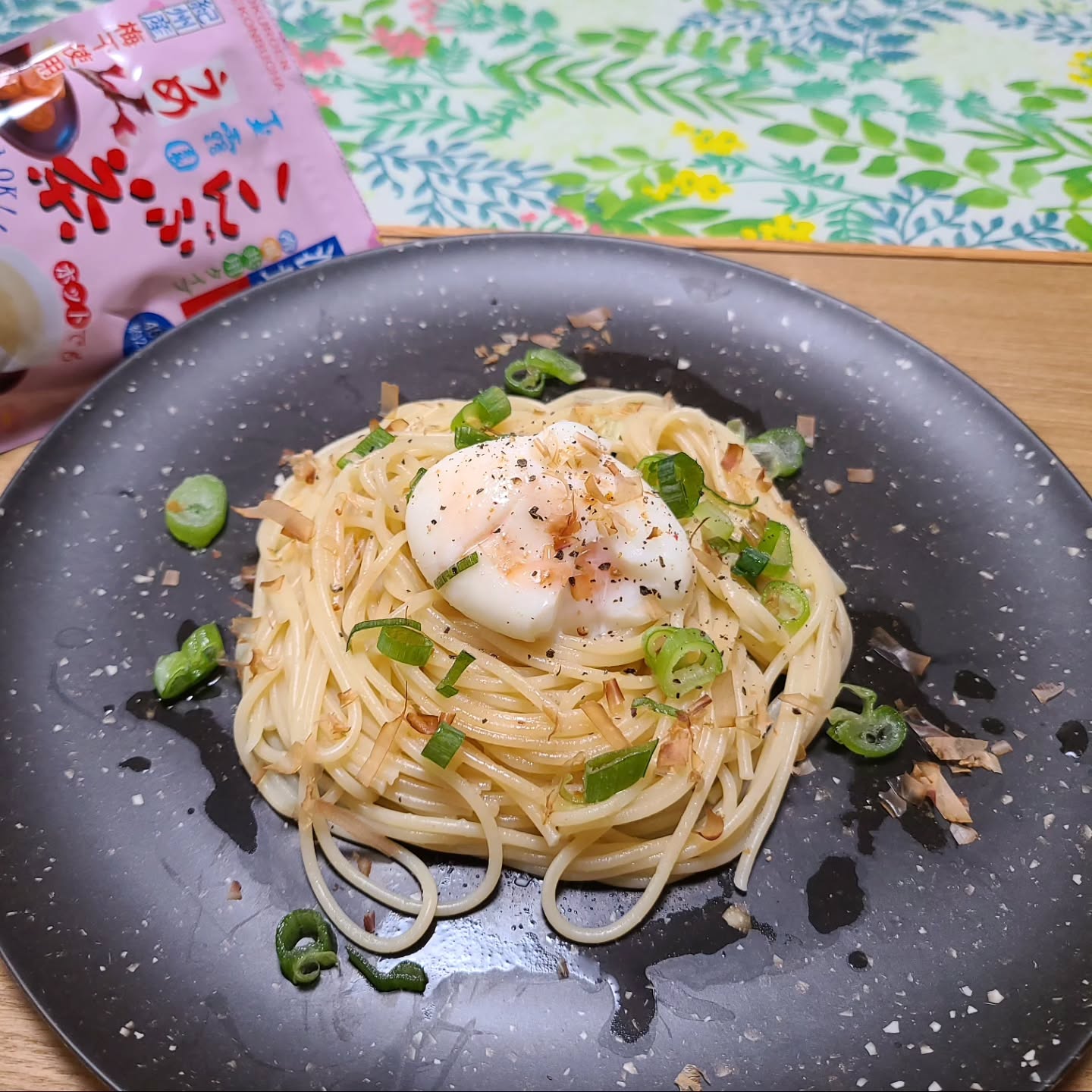 じめじめな今日も 爽やかな梅の風味と昆布の旨味 『減塩梅こんぶ茶』で さっぱりパスタランチ🍝 粉末タイプで水にも溶けやすい 『減塩梅こんぶ茶』は粉末なので手軽 色々なお料理にかけて使えて愛用中 @gyokuroen さっぱり冷たいパスタが食べたくて とろとろの半熟卵をのせて鰹節と葱 梅こんぶ茶をかけたパスタに。 つるっと食べれて美味しかったです😋 #PR #玉露園 #減塩梅こんぶ茶 #玉露園の梅こんぶ茶 #monipla #gyokuroen_fan #ランチ #おひるごはん #おうちごはん #パスタ #おうちパスタ #ランチ #lunch #japanesefood