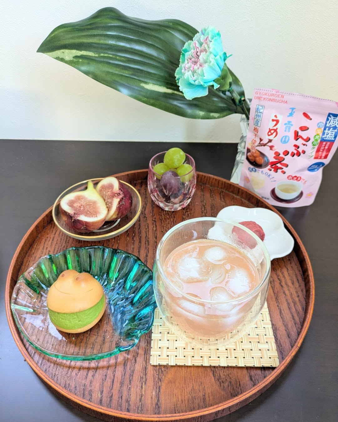 9月に入ったのに暑い🫠 ティッシュが洗濯機に入ってて 知らずに一緒に洗ったから大変な事になって 後片付けが大変すぎたょ。 お疲れだから 和テイストななティータイム🫖 名古屋のお土産の 🐸カエルまんじゅうのマリトッツォ イチヂク、ぶどう、梅干し、 梅こんぶ茶🍵 梅こんぶ茶は こんぶ茶生誕107年目の 「元祖こんぶ茶」の玉露園の 『減塩梅こんぶ茶』を冷しました。 塩分を30%カット(当社梅こんぶ茶比) カルシウムやヨウ素などの ミネラル分を豊富に含んでいるょ。 梅干しに含まれていまるクエン酸って 体の疲労物質を取り除いたり、 体指肪をため込まない効果があるんだょ。 日本救急医学会で作成された 「熱中症診療ガイドライン」でも、 梅こんぶ茶が熱中症予防に有効と 考えられる飲み物として掲載されているょ。 @gyokuroen #PR #玉露園 #減塩梅こんぶ茶 #玉露園の梅こんぶ茶 #monipla #gyokuroen_fan #マリトッツォ #梅干し #梅 #イチヂク #ぶどう #梅こんぶ茶 #減塩 #カエルまんじゅう #まんじゅう #饅頭 #ティータイム #teatime #tea