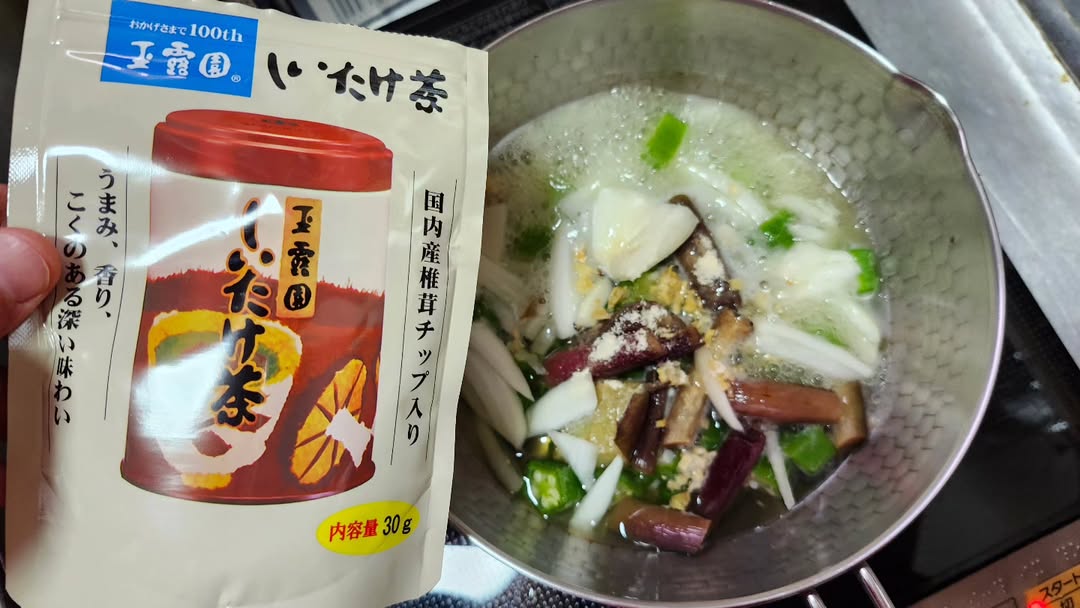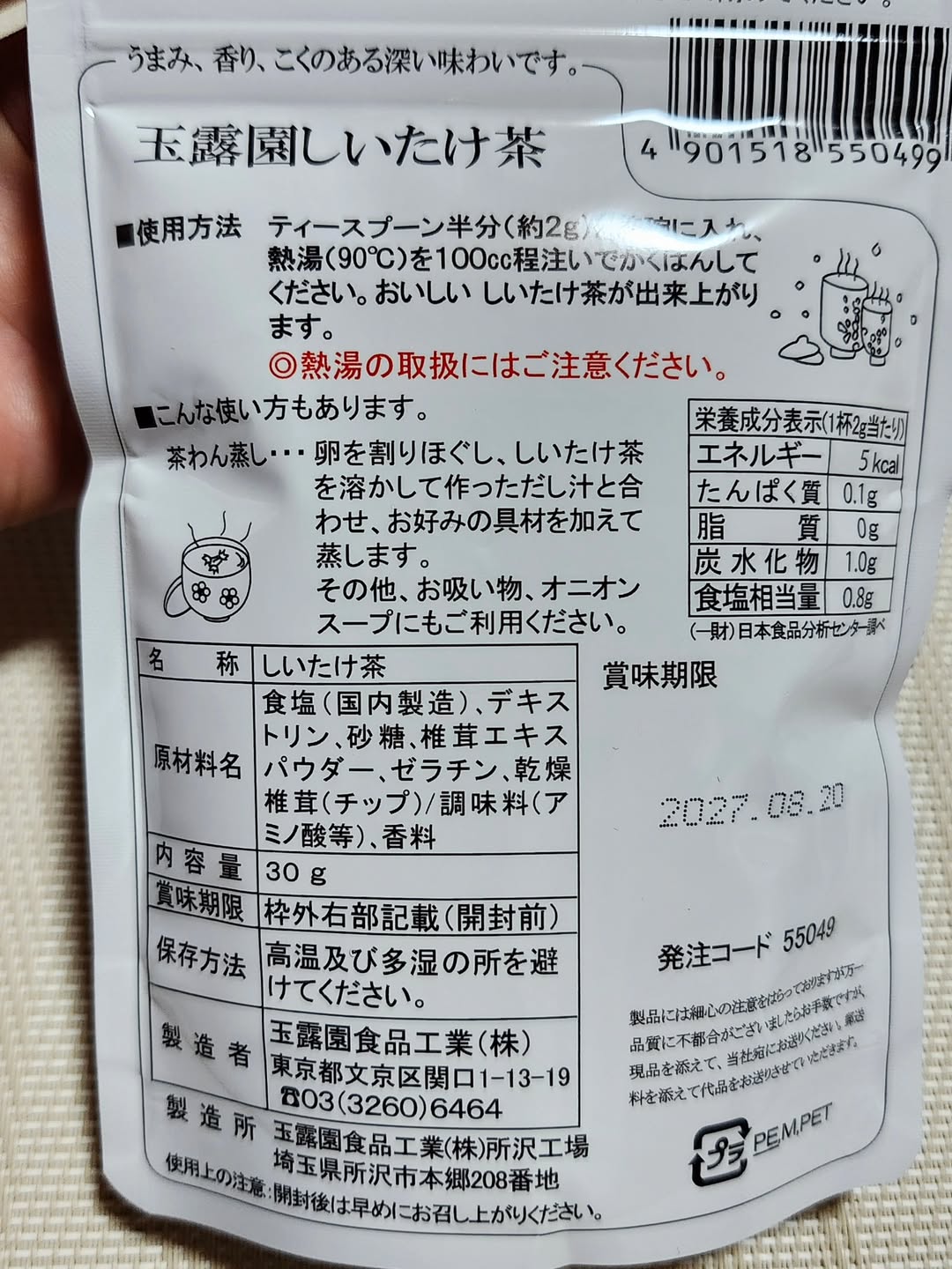 『玉露園しいたけ茶』は、乾しいたけを特殊製法で微粒状にして、しいたけの持味を十分に生かした飲みものです。飲用としてだけでなく、茶碗むしやお吸いものなどの料理にもお使いいただける、うま味とたっぷりの栄養成分が手軽にとれる商品です。