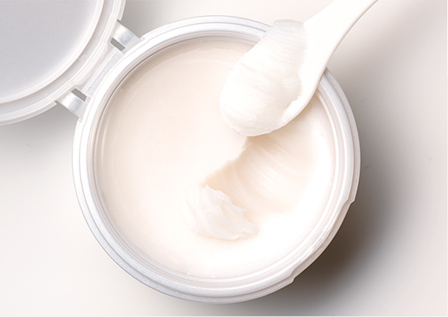 手のひらで温めると、とろりととろけ、肌になめらかに広がって