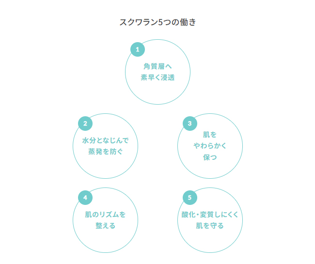 スクワランはうるおいを守り、肌のやわらかさ、すこやかさを保つ成分。