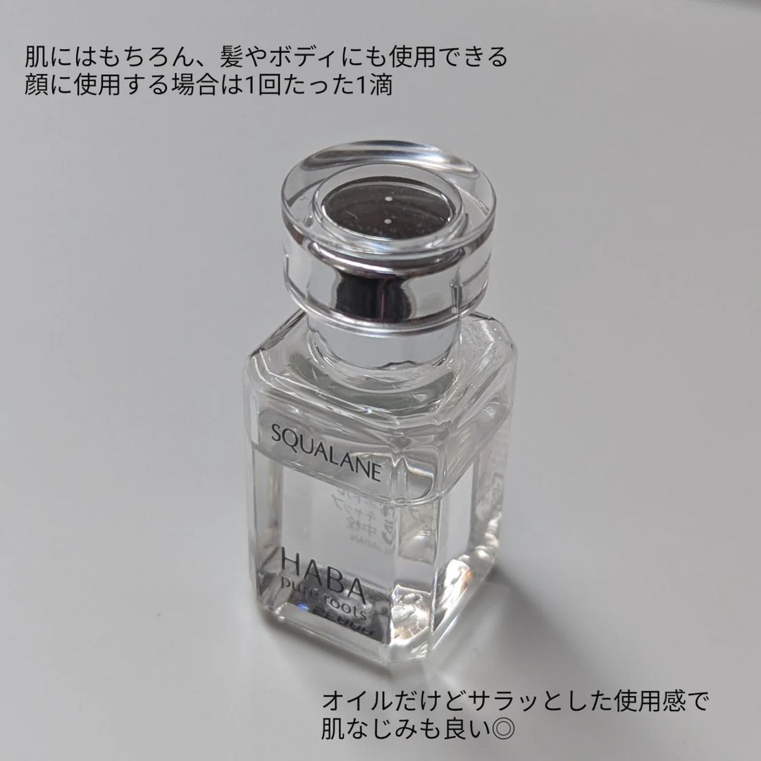 #PR HABA/ハーバー 高品位「スクワラン」15mL スクワランはうるおいを守り、肌のやわらかさ、すこやかさを保つ成分。 スキンケアの仕上げに1滴で、しっとり、やわらかな肌へ導いてくれるオイル美容液 −−−−−−−−−−−−−−−−−−−−−−−−−−−− ▶朝晩1滴ずつ顔に使用。髪や爪にも使用してみました さらりとしたテクスチャーは伸びが良くすーっと肌に馴染みます。無色透明で香りがないのも使いやすいポイントでした たった1滴で乳液と美容液の役割を果たしてくれるアイテム。最初は、本当かな?と思いましたが肌がしっとりする感覚があり驚きました。時短ケアになるのも嬉しい◎ #PR #株式会社ハーバー研究所 #ハーバースクワラン #高純度スクワラン #スクワラン美容 #HABA #高品位スクワラン #monipla #haba_fan