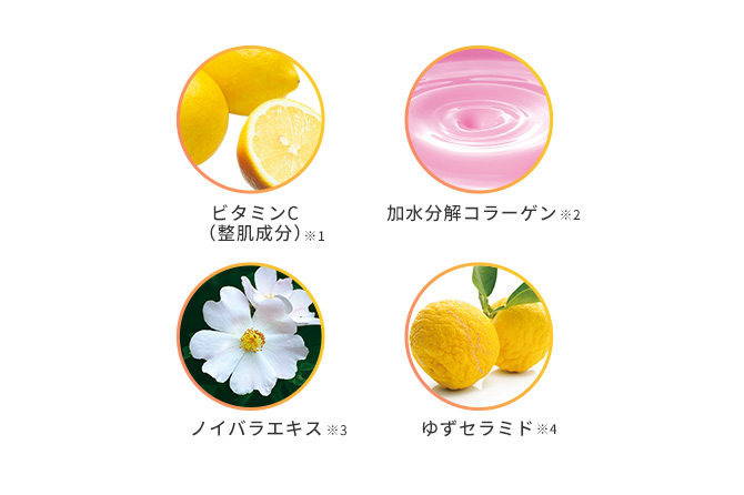 うるおいを保つ加水分解コラーゲンやゆずセラミド、
