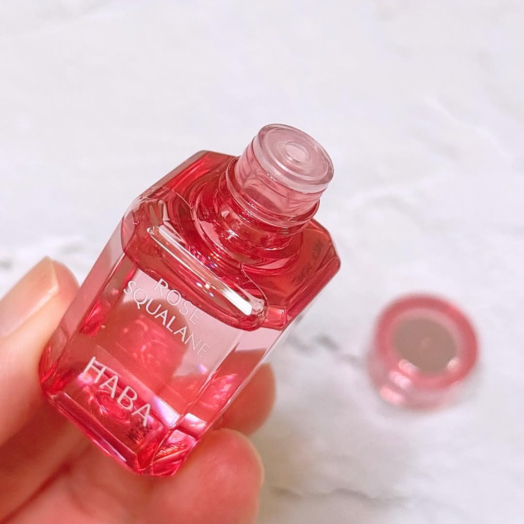 \ロングセラーの『HABAスクワラン*』に数量限定販売のでローズスクワラン*🌹/ ハーバー株式会社 『HABA ハーバー ROSE SQUALANE ローズスクワラン*』 〈化粧オイル〉 15mL @haba_jp HABAのスクワラン*オイルといえば、ロングセラーの美容オイルというイメージ! ロングセラーアイテムには、リピーターも多く、ロングセラーたる理由があるはずと思って使ってみたかったの。 現在数量限定販売中の『ローズスクワラン*』を提供いただいたので、使ってみました。 ミニ香水瓶のようなかわいいパッケージ! 1滴取り出してみると、肌にじゅわ〜とじわじわ広がっていくような軽量なオイルで、重たさは感じない。 ダマスクローズ🌹精油***のゴージャスな香りがふわっと香ってくる! 使用ステップは、朝晩の洗顔後、化粧水で肌を整えた後に、乳液、クリーム代わりに使う。 使い方は、手のひらに化粧水の水滴がある状態で、スクワラン*を1滴**加え、顔全体に使えるように、手のひら全体にしっかりのばして、手の温もりで優しく顔を包み込んでそっと押さえるように前顔になじませる。 化粧水の残りとスクワラン*オイルを予め手のひらでなじませることで、さらにベタつかず、化粧水で整えた肌にもなじみやすく、ムラなく均一になじんだ気がする。 私は季節の変わり目や生理周期で時々敏感肌になると、皮脂がさらに多く分泌されるオイリー肌。 朝起きると皮脂のベタつきが気になるのだけど、『ローズスクワラン*』を使うと、朝起きた時の肌でもうるおいと皮脂のバランスが良い状態のようで、うるおいがあるのにベタつきが少ない印象。 朝晩1滴ずつ使って15mLの小瓶で約3ヶ月使えるらしく、そう考えたらコスパも良好。 髪やボディ、爪にも使えるらしいので、今後はネイルオイルとしても使ってみたい。 『ローズスクワラン*』は数量限定なので、気になる方は、お早めに! * 保湿成分 ** 一回の使用量のこと *** ダマスクバラ花油(香り成分) #PR #株式会社ハーバー研究所 #ローズスクワラン #ハーバースクワラン #monipla