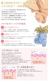 防腐剤パラベンなど、肌への刺激となるものは一切使わず、メイク品も販売当初より、色素は無機顔料(ミネラルカラー)のみを使用。