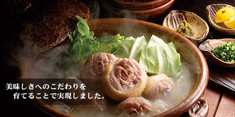 自社グループで養鶏から携わる、安全で滋味豊かな銘柄鶏「華味鳥」の名前をそのまま店名に冠する【水たき料亭 博多華味鳥】は、品質への自信の現れです。 お店の味をそのままに、博多の味と食文化に触れていただきたい。博多華味鳥が博多発にこだわり続ける理由です。