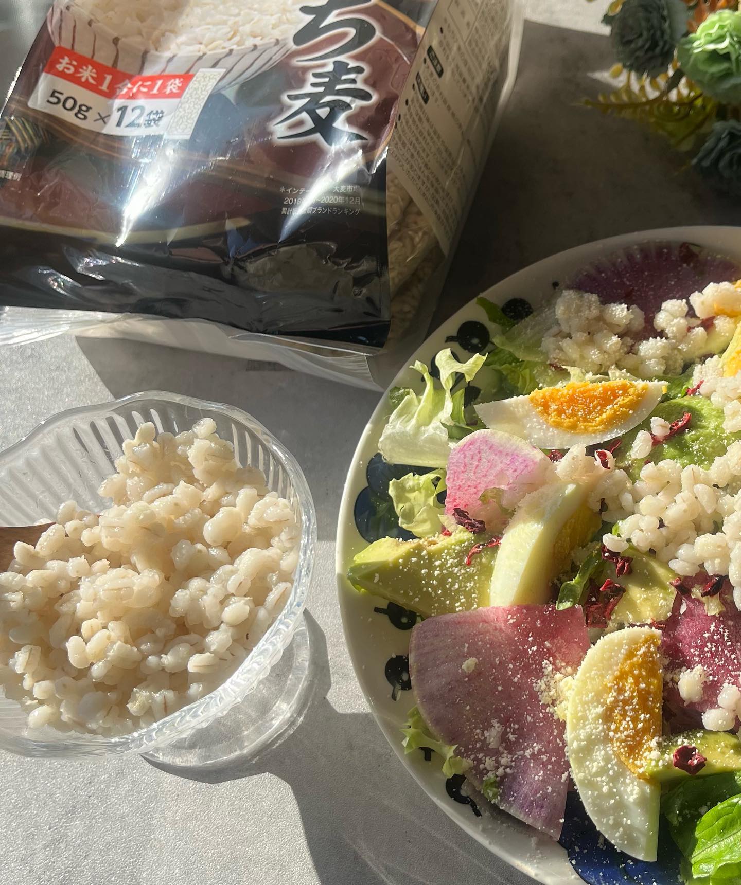 今回はもち麦を茹でてサラダに🥗トッピングしました✨
