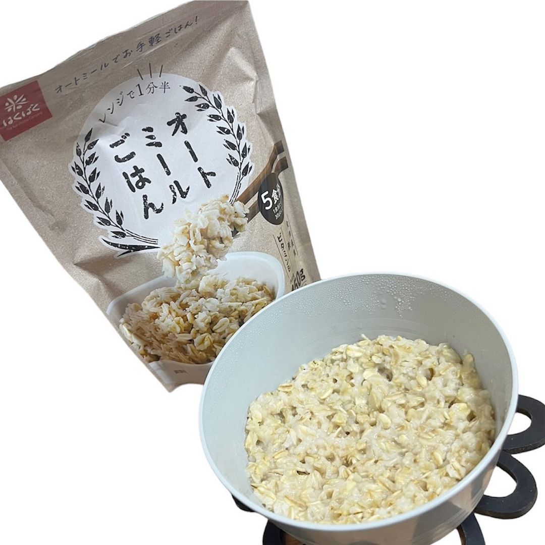 オートミールごはんを30g(大さじ4-5)と水60mlを混ぜてレンジで1分半加熱するだけ🙆♀️✨