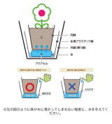 ※左の図のように鉢が水に浸かってしまわない程度に、水を与えてください。