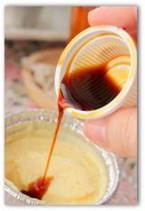 神戸とろりん・・・マダガスカル産の最高級天然バニラビーンスを贅沢に使い、焼き窯の上火と下火を限りなく調整し焼き上げた、とろとろでコクがある、見かけも面白いが中身はもっと奥が深い、ほろにがカラメルソースを添えた大人気商品です!!
