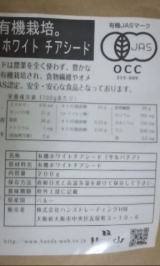 原材料名 有機ホワイトチアシード(サルバチア)ペルー産