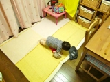 0歳の下の子が、寝返りをうてるようになりました たまに、頭を「ごん」と音をたてることがあり、 ニューロンが破壊されやしないか、若干心配です 我が家はフローリング式を採用してしまったので、 冬場はカーペット類を敷いて足元冷え対策をしてます この部屋で一日の大半を下の子は過ごすわけですし… 2009/11/15