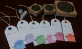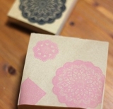 以前もご紹介したことのあるスタンプの別シリーズのご紹介★押すだけ簡単!好きな柄&インクカラーが選べるレーススタンプ豪華4点セット★前回の大きなタイプとは違って小さなドイリーなので小物のラッピングに向いてるのかなと思い、タグを作ってみました可愛いー台紙はリングメモ?って言うんですかね単語帳的なやつの角… 2012/04/13