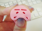 ハンコヤドットコムさんよりお品が届きましたありがとうございますピンクでかわいいなんかくにゅっとします柔軟なケシゴムのようなシリコン口のところはすごく深くてフニャフニャこんなに深くなくても?と思っちゃうんですがおすとこんな感じただ 私が多用したい”ヒョエエ顔”にしようとすると版面が… 2010/01/30