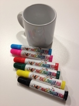 マーカーマグ(小)簡単にオリジナルの陶器ができる、マーカーシリーズ!絵を描いてからお湯をそそぐと、熱によってカップ表面のフィルムに色が定着しますイラストや模様を描いて、オリジナルマグカップを作ろう!実用的なマグカップは、贈り物にも喜ばれますセット内容:マーカーマグ(小)×1、マーカー6色×各1サ… 2012/06/29