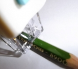 ●不安定な鉛筆やクレヨンをピタッと固定できる鉛筆ガイド付きだから、カンタンになつ印できます。