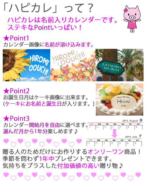 『大切な方へのプレゼント☆名前入りカレンダー「ハピカレ」』