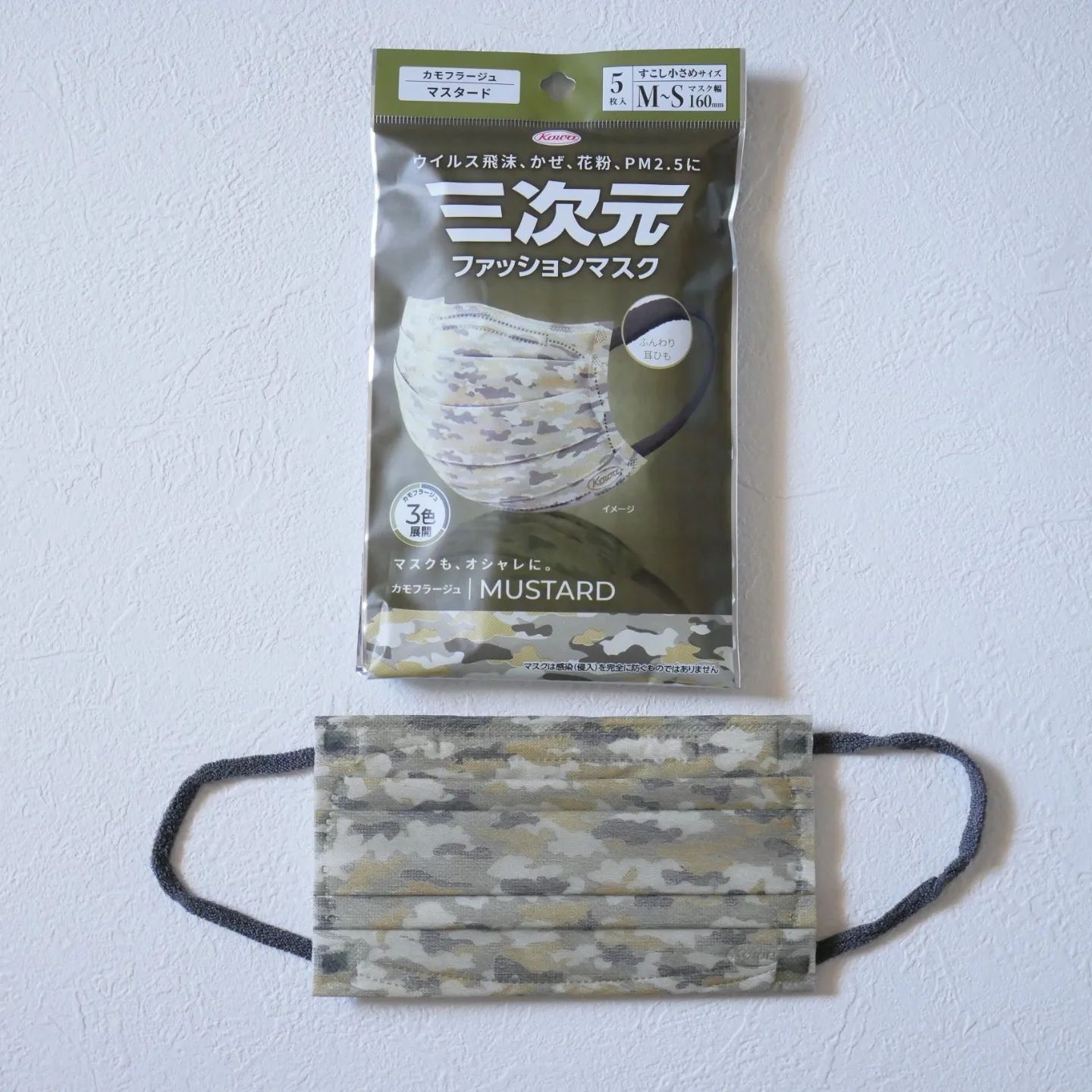 * 興和株式会社『三次元ファッションマスク』 * * 高機能&快適構造で花粉、汚染空気、ウイルス飛沫もブロックする『三次元マスク』 マスクもオシャレにと登場しているのが『コーワの三次元ファションマスク』 今回その中からカモフラージュ柄【マスタード・アッシュグレイ・オリーブ】の3色を使用してみました。 ■捕集フィルターが99%カット、天然カテキン由来の抗菌フィルター内蔵。 フィルターはJIS抗菌試験合格されてるフィルター使用。 ■つけ心地快適耳ひも。 ■肌ざわりやわらか高品質不織布。 ■口もとゆったり。 · 無地柄でシンプルコーデ時に使用中。 マスクをファションとして取り入れられて嬉しい♪ 手にしてみるとカサカサした感じでいつも使用している不織布とはちょっと違う感触かなと。 つけてみると肌ざわりがとてもやさしい。 耳ひもが柔らか素材だから耳あたりの違和感なく。 またムレ息苦しさや会話中にズレてくる悩みも解消されて快適。 開発者からのワンポイントアドバイスがあるようで… ■ファンデ取れ防止の為、ノーズフィルターはあらかじめ鼻の形に整えておく。 ■フィット性よく着用時の見た目を綺麗にするためにプリーツを大きく広げて形を整える。 ■色つき耳ひもだからねじれていると目立ってしまうらしい。 * * #コーワ #興和 #KOWA #三次元マスク #三次元ファッションマスク #カモフラージュ #camouflage #ハピネスダイレクト #カモフラ #ミリタリー #monipla #happinessdirect_fan