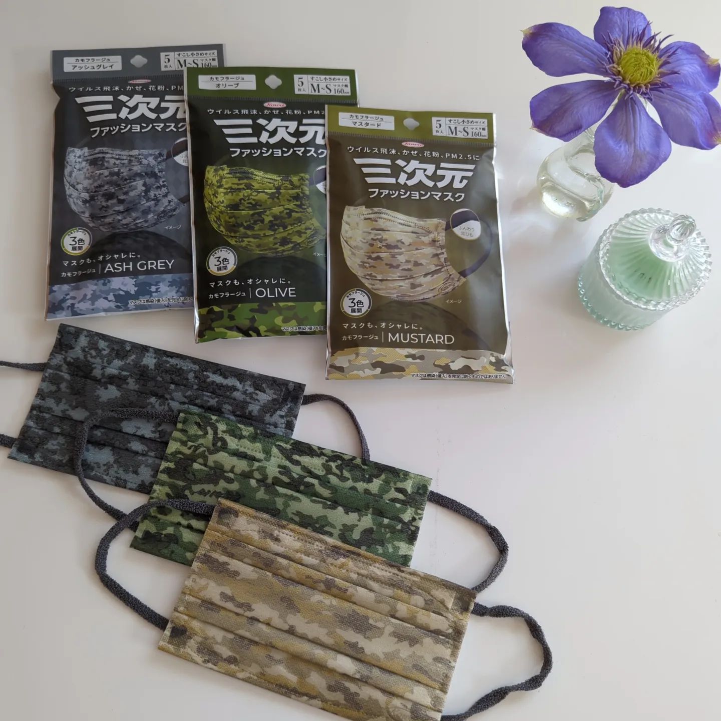コーワの三次元マスクに ファッションマスクが新登場!! レオパードやカモフラージュなど色も豊富でオシャレ〜 カモフラージュ柄の3色 マスタード/アッシュグレイ/オリーブ 紹介するよ〜!! 一枚目画像で着けてるのはアッシュグレイ すこし小さめM~Sサイズ(マスク幅160mm)だよ SとMサイズの間のサイズ 夫婦や親子間でもシェアできるサイズだね❣️ 気に入ったのは、ゴムの部分! 太くて軽い力で伸びて超良質 一度で捨てちゃうのが本当にもったいないよ〜😭というクオリティ✨ #コーワ #興和 #KOWA #三次元マスク #三次元ファッションマスク #カモフラージュ #camouflage #ハピネスダイレクト #カモフラ #ミリタリー #monipla #happinessdirect_fan