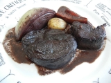 夜は、過日、半額となっていたA4ランクの黒毛和牛の脛肉@675円(225g)で、赤ワイン煮に 付け合わせは、同時に煮込んでおいた玉葱と、人参に、妻定さんにて調達しておいた青森田子産の大蒜 牛脛肉の赤ワイン煮は、極力沸騰させない様、心掛けたものの、残念ながら弾力もあり、ん、なかなか 〆… 2012/01/29