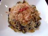 はりま製麺株式会社『揖保乃糸 縒つむぎ(ひね)38束入』スーパーの前出し商品に、そうめんが顔出ししていました 春なんだなと嬉しく陳列の様子(揖保乃糸は赤帯でしたよ)を見ながら、頂いた揖保乃糸に思いを馳せて、帰宅すぐに縒つむぎ(ひね)を5束湯がいて、いただきました!ゆで時間で、麺の硬… 2012/03/31
