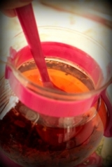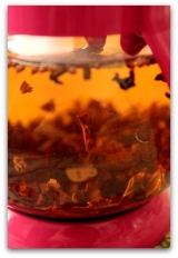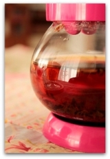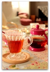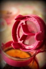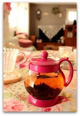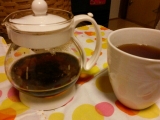 紅茶の茶葉をゆったり開かせる丸型ティーポット。フタに茶こしがついてそのまま注げます。