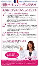 モデルさんが多く、お洒落の国といえばフランス! そのフランスで開発された ”スリミング成分”が配合されたボディ乳液だそうです 怪しいな、という声もあるでしょうが フランスでは広告に載せる際には臨床試験が義務なので しっかりとした臨床結果も有るとの事です 如何して痩せるかと言うと 前述のスリミ… 2011/07/25