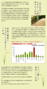 コレステロールが気になる「私」に!!(笑)こめ油のご案内です!!(笑)こめ油の原料は、玄米を精米したときに得られる米ぬかに20%ほど含まれている原油ですこの、1合の玄米からわずか約2gしかとれない原油を、独自技術によって精製したものがこめ油となるのですここ数年、クセのない味と健康面での安全性から… 2013/06/24