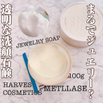 今の時期特に乾燥が気になり、洗顔後はすぐに化粧水などで保湿しないとカサカサ&ヒリヒリ肌に悩んでいるゆづきです…😥 そんな時、しっかりうるおい感が残る「まるで宝石⁉」と思うくらい綺麗な洗顔石鹸を使ってみました。 ╋━━━━━━━━━━━━━━━━━╋ 株式会社ハーベス 《メトラッセ ジュエリーソープ》 内容量:100ml / 通常価格:3,080円(税込) ╋━━━━━━━━━━━━━━━━━╋ ▼特徴▼ ☑️洗顔しながら肌のうるおいを守る ☑️宝石のような見た目で透明感溢れる弱酸性のアミノ酸系洗顔石鹸 ☑️さっぱりとした洗いあがりなのにつっぱらない ☑️60日間熟成されることで、うるおい感と透明感が生まれました 見た目が綺麗なだけじゃなく、アミノ酸系洗浄成分だから肌にも優しいのが嬉しいメトラッセ ジュエリーソープ。 (′□`◎)ノvvvvvvvvvvvvレビューココカラvvvvvvvvvvvv 宝石のようなな見た目の洗顔石鹸ということで、使う前から楽しみにしていました。 オシャレな箱を開けてみると、びっくりするぐらい透き通ってて綺麗~😍 使うのがもったいなくらい❗ 旦那がいる隣で写真撮ったりしていたのですが、旦那も綺麗で石鹸ぽくないね❗とびっくりしていました(笑) 使用前にフィルムを剥がすと、触った後が付いてちょっとくすんでしまいますが、水で流すとキラキラ感が復活✨ 溶けやすい石鹸なので、泡立てネットで優しく泡立ててみると、キメが細かいふわふわの泡が出来上がります。 すごく弾力がある泡ではないけど、へたれない泡で洗顔しやすかったですよ😁 そして、洗いあがりは皮脂汚れもしっかり落ちている感じでさっぱりとしています。 ですが特徴でも書いた通り、程よい保湿感は残っているので慌てて化粧水を付ける必要もありませんでした。 その他にも、肌が何となく柔らかくなった感じ😊 使用後なめらかな肌触りになったし、きつい香りもないし、私にはピッタリのメトラッセ ジュエリーソープでした✨ (′□`●)ノvvvvvvvvvvvvレビューココマデvvvvvvvvvvv 今まで色々な石鹸を使ったことがありますが、こんなに透明感のある綺麗な石鹸は初めてでした。 箱を開けたらわぁ~って声が出ちゃうくらい、本当に綺麗なメトラッセ ジュエリーソープなので、自分用にはもちろんプレゼントにも喜ばれるんじゃないかな?😊 肌にも優しい洗顔石鹸なので、皆さんも是非チェックしてみて下さいね~😊 #洗顔石鹸 #洗顔料 #リボーンスキン #メトラッセジュエリーソープ #メトラッセ #metllasse #monipla #harvescosmetics_fan #美容好きさんと繋がりたい #コスメ好きさんと繋がりたい 2020/11/30